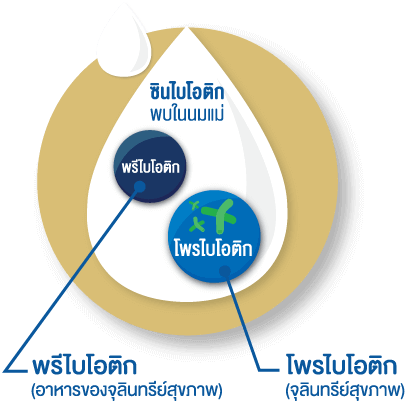 พรีไบโอติก คือแหล่งอาหารสำคัญของจุลินทรีย์ที่มีประโยชน์ต่อร่างกายเรียกว่า โพรไบโอติก(Probiotics) การทำงานแบบ ซินไบโอติก ซึ่งพบในนมแม่ ช่วยส่งเสริมให้จุลินทรีย์สุขภาพในระบบทางเดินอาหารของลูกเติบโตได้ดี ช่วยยับยั้งการเจริญเติบโตของจุลินทรีย์ก่อโรค ส่งผลต่อระบบภูมิต้านทานที่ดี